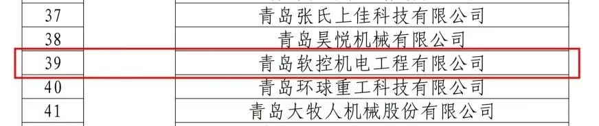 近日,山东省市场监督管理局公布2024年山东省高端品牌重点培育企业名单,青岛软控机电工程有限公司成功入选。