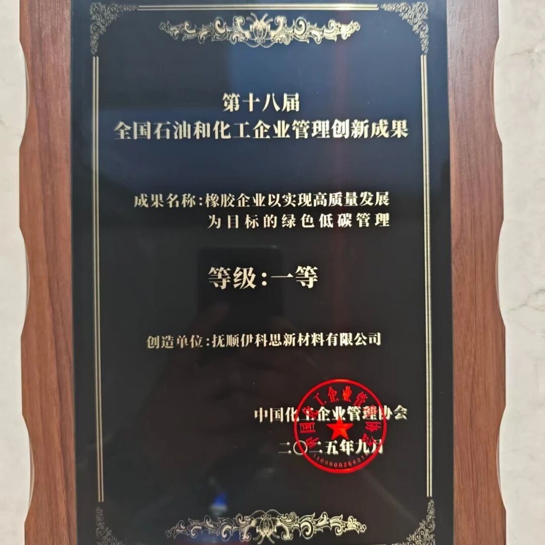 近日,在全国石油和化工企业管理创新指导委员会的指导下,中国化工企业管理协会组织发布了第十八届全国石油和化工企业管理创新成果。其中,抚顺伊科思新材料有限公司申报的《橡胶企业以实现高质量发展为目标的绿色低碳管理》成果,荣获第十八届全国石油和化工企业管理创新成果一等奖。