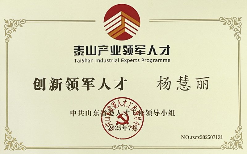 “泰山产业领军人才”工程是山东省委、省政府实施的一项高端人才培育计划,旨在聚焦全省重大发展战略和产业转型升级需要,遴选并支持一批在科技研究与产业创新中取得突出成果、具备较强行业引领力的高层次人才,该荣誉称号代表山东省人才评价体系的最高荣誉之一。