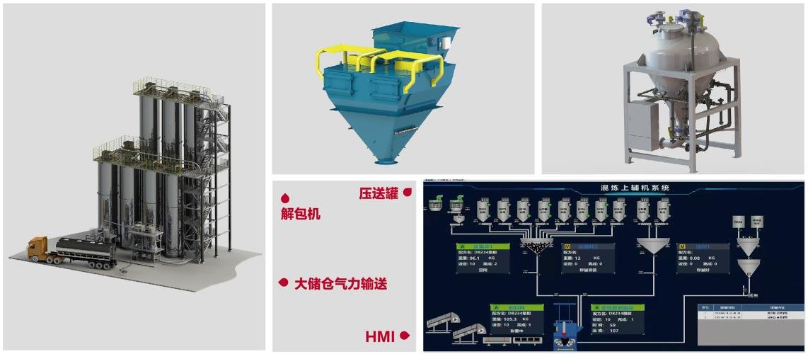 该系统是软控自主研发的具有高科技含量的智能化自动输送、配料、投料系统。系统运用了现代信息技术,深入开发利用系统资源,真正实现管控一体化。可为各种规格的密炼机配套上辅机系统或升级、改造与维护。