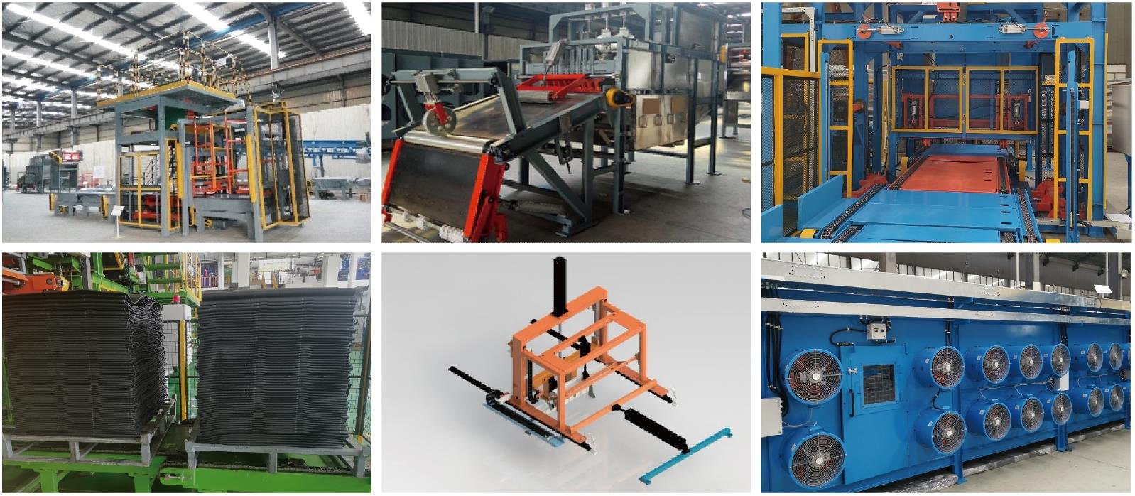 胶片冷却线是密炼机的配套设备,在胶片冷却叠片时,与开炼机或双螺杆挤出机组成现代化炼胶下辅机系统,对胶片实现接取、打标、纵裁、浸涂隔离剂、风干、叠片、称重等,可广泛应用于轮胎、制品行业。