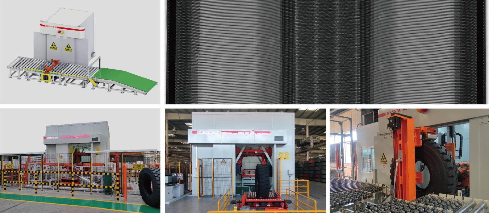 轮胎X射线检验机主要用于轿车、载重、工程及翻新子午线轮胎内部结构的检测。检测项目包括: 胎体帘线间距和反包, 钢丝带束层级差, 接头断层缺陷, 气泡, 钢丝断裂, 钢丝分布不均、撕裂、杂质等。