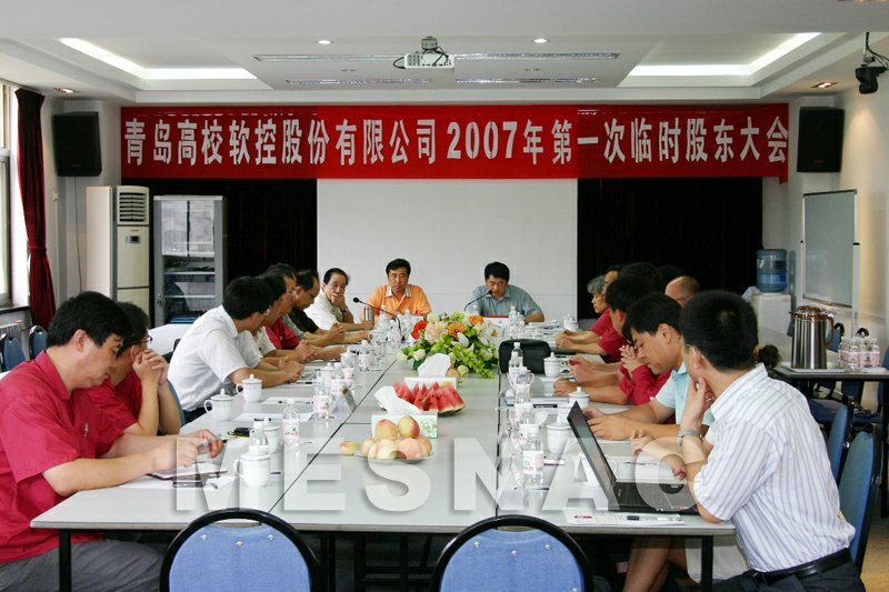 8月16日,“青岛软控2007年第一次临时股东大会”在公司第三会议室召开,出席会议的股东及股东代表9人,占公司有表决权股份总数的69.43%。公司部分董事、监事、高级管理人员、公司聘请的见证律师、保荐机构代表及媒体记者出席或列席了本次会议。同日,第三届董事会第八次会议和第三届监事会第四次会议也顺利举行,审议通过了《2007年半年度报告》。2007年上半年,公司按照年初制定的经营计划开展工作,主营业务实现了快速增长,为广大股东交上了一份满意的答卷。