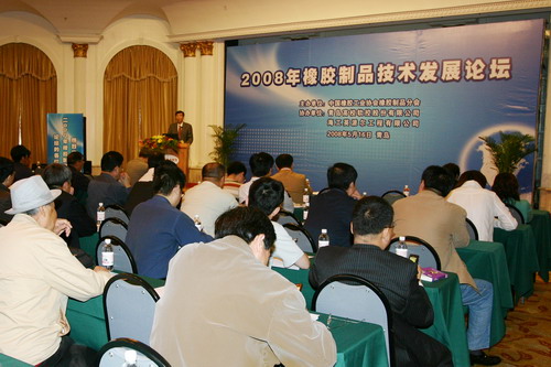 5月16日至5月17日,2008年橡胶制品技术发展论坛在青岛北海宾馆成功举行,此次会议由中国橡胶工业协会橡胶制品分会主办,青岛高校HJC黄金城集团和海工英派尔工程有限公司协办,会议共有51个单位,67名会员单位代表出席,共发表论文19篇。