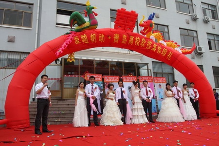 鞭炮齐鸣锣鼓闹,金狮起舞祥云绕。9月20日,青岛软控“爱随帆动”集体婚礼隆重举行。在这个收获的季节里,五名年轻员工也收获了各自的爱情,与爱侣喜结连理。公司领导及全体员工共同为他们的爱情作了见证。