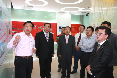 6月11日,韩国三大轮胎制造厂商之一的耐克森轮胎株式会社会长姜丙中以及青岛耐克森轮胎有限公司总经理李在秀一行在青岛莱西市市长孙利国等领导的陪同下来公司访问,董事长袁仲雪、总裁高彦臣等公司领导热情接待了来访客人。 公司领导在信息化展厅向姜丙中等人介绍了软控十年发展的情况,随后带领客人参观了成型机生产线。双方还就未来几年内在橡胶装备方面的合作进行了充分交流。