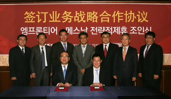 10月23日,软控与韩泰轮胎全资子公司Emfrontier(EMF)公司在韩国首尔签订了旨在建立战略合作伙伴关系的《合作意向书》,软控常务副总裁郑江家与EMF公司总经理安在焕代表双方签约。双方将在IT解决方案、工厂自动化、物流自动化三个领域内展开深度合作,在全球范围内共同开发市场。