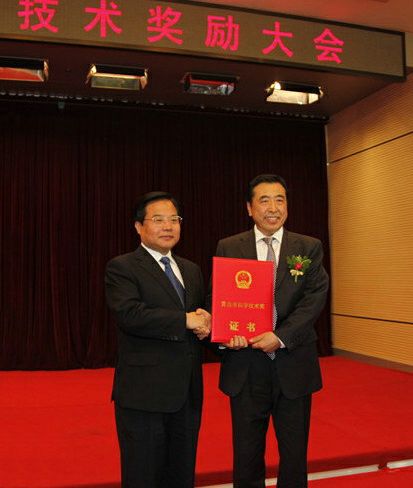 5月9日,青岛市委、市政府在中国海洋大学隆重召开全市科学技术奖励大会,国家橡胶与轮胎工程技术研究中心常务副主任、软控董事长袁仲雪荣获青岛市2013年度科学技术最高奖,青岛市委副书记、市长张新起为袁仲雪颁奖。