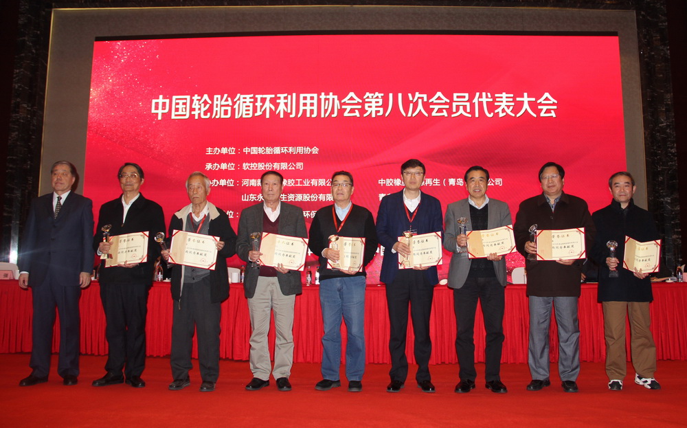 11月20日,中国轮胎循环利用协会第八次会员代表大会在青岛召开。国家橡胶与轮胎工程技术研究中心常务副主任、HJC黄金城集团董事长、中国轮胎循环利用协会执行副会长袁仲雪出席大会并被授予“风雨同舟贡献奖”。在协会八届理事会的选举中,袁仲雪连任执行副会长,软控轮胎再生利用事业部总经理王报林当选为副会长。袁仲雪在发言中强调,轮胎循环利用行业须创新工艺和技术,制定科学的标准来规范行业发展,旗帜鲜明地倡导绿色制造,保护人类共同的地球和资源。