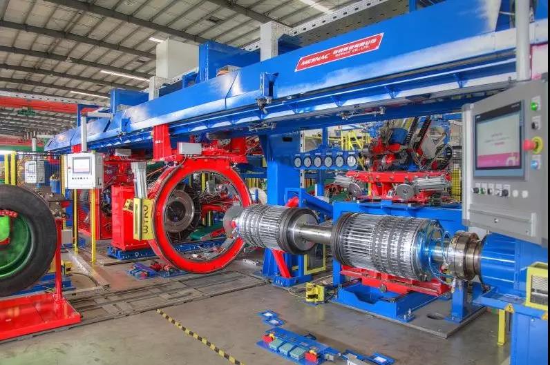 其二,自动化程度显著提高。带束层环引进WYKO技术,大范围的调整量使得生产全尺寸范围内轮胎不用换工装,带束层鼓可以实现一分钟快换鼓瓦,带束层供料架可以满足自动定长裁断,自动化程度大大提高。同时设备配备了最新研发的复合件裁刀,可以实现复合件和子口预复合同时裁断,以10.00R20轮胎规格为例,单胎循环时间为150秒。