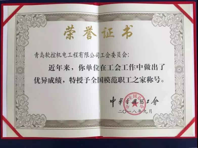 近日,中华全国总工会下发了《关于表彰“全国模范职工之家”的决定》,软控机电工会荣获“全国模范职工之家”荣誉。
