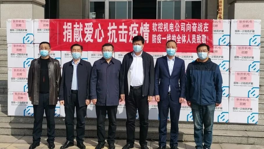 3月19日与26日,青岛软控机电工程有限公司共向胶东街道捐赠2000套防护服。胶东街道党工委副书记、办事处主任李明昔,胶东街道人大主任张坤德、党工委副书记赵方毅,软控股份副总裁、软控机电工程有限公司总经理武守涛,软控工会主席周丹丹等出席捐赠仪式。