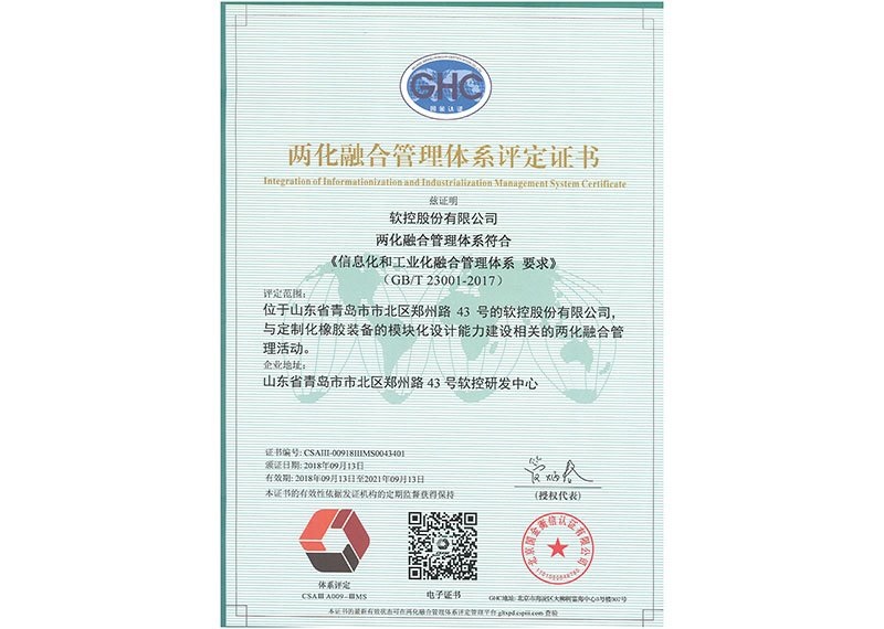 两化融合管理体系贯标证书
